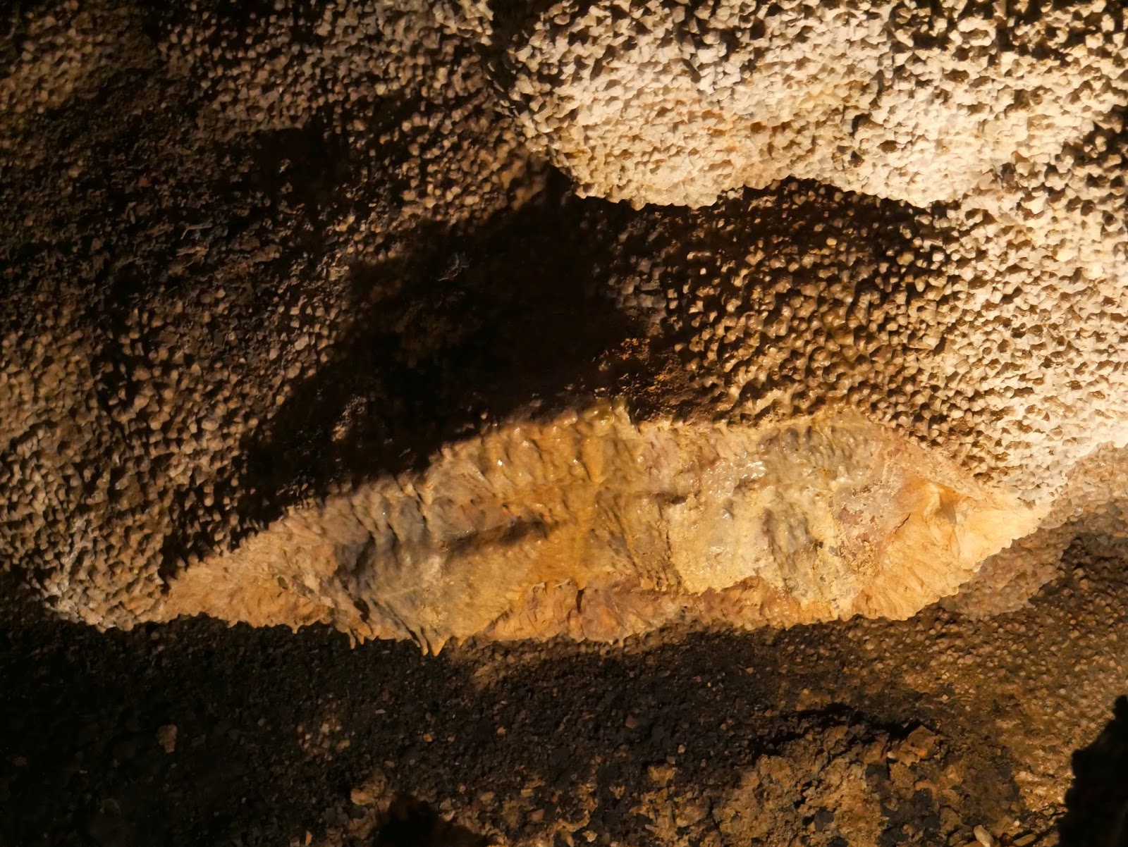 During the Scenic Tour, you will see two types of calcite crystals known as nailhead spar and dogtooth spar, which are the "jewels" of Jewel Cave. In addition, you can view boxwork, cave popcorn, flowstone, stalactites, stalagmites, draperies, and a long ribbon drapery called the cave bacon.